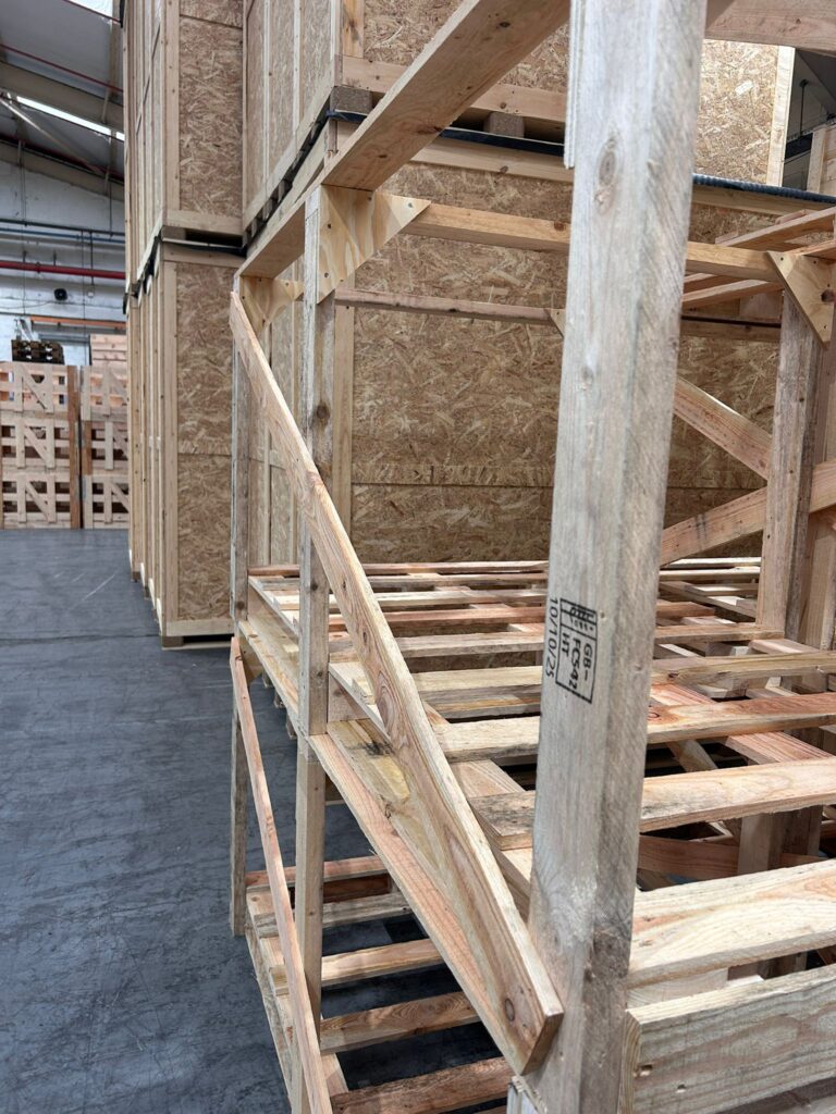 ISPM15 rules require crates and pallets shipped outside of the UK to be made of wood that has been heat treated. Once the wood pieces have been treated, they are stamped with ISPM15, the company logo and the date the treatment was carried out.